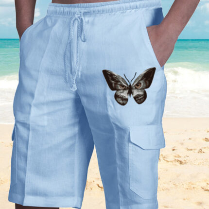 Linen Shorts Multi Pocket Tether Men’s Beach Cargo Pants