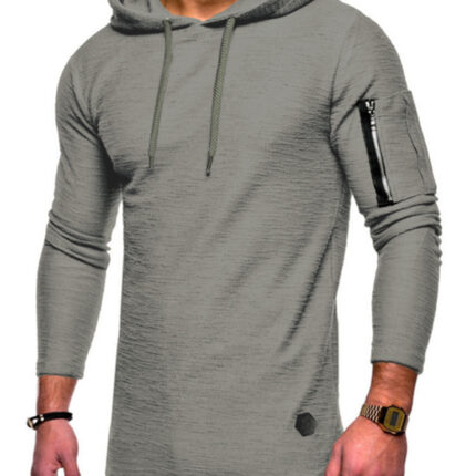 Men’s solid color hooded casual long-sleeve T-shirt