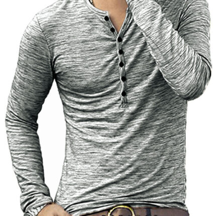 New fashion open placket slub silk men’s long-sleeved T-shirt