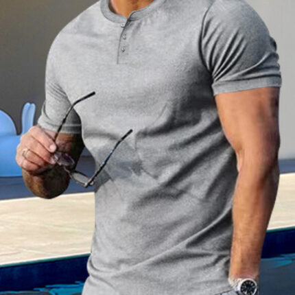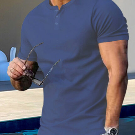 Men’s Short Sleeve Henley Round Neck Slim Fit Athletic T-Shirt