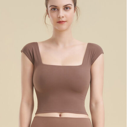 Women’s Solid Color Open Back Round Neck Sleeveless Sports Tank Top