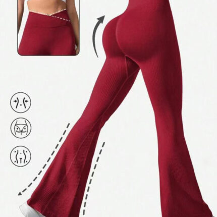 Cross Waist Threaded Flared Seamless Yoga Pants