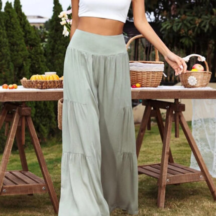 Casual wide-leg cotton and linen high-waist loose trousers for women