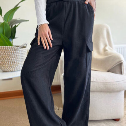 Autumn and winter casual simple style loose solid color corduroy wide-leg pants