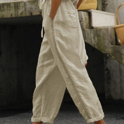 Women’s Solid Color Cotton Linen Casual Pants Stitching Sweet Cropped Pants
