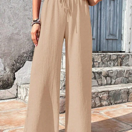 Casual wide-leg cotton and linen high-waist loose trousers for women