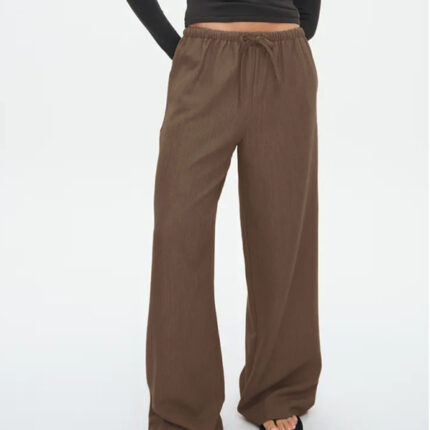 Solid color casual elastic waist drawstring straight trousers casual pants