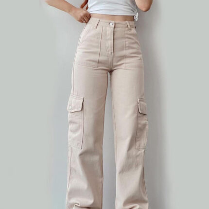 Versatile casual pants, mid-rise three-dimensional pocket trousers, waist-cinching overalls