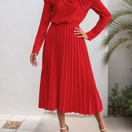 Date Party Elegant Sweet Style One Shoulder Long Sleeve Solid Color Women’s Dress