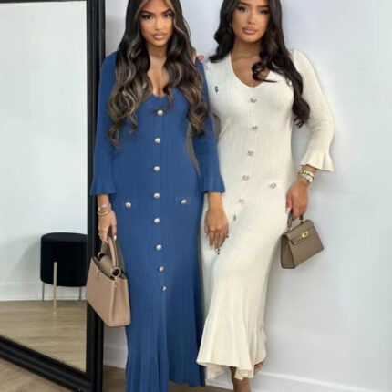 **SEO-Optimized Title:** Women Fashion Casual Zip-Up Long Sleeve Dress