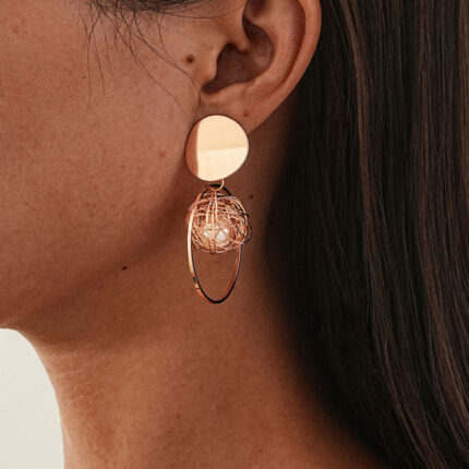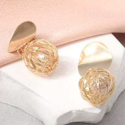 Fashion earrings, personalized hollow gold wire wrapped ball pearl earrings, non-pierced ear clips