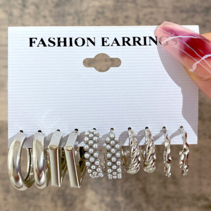 Round Geometric Earrings Gold and Silver Set 6 Pieces
