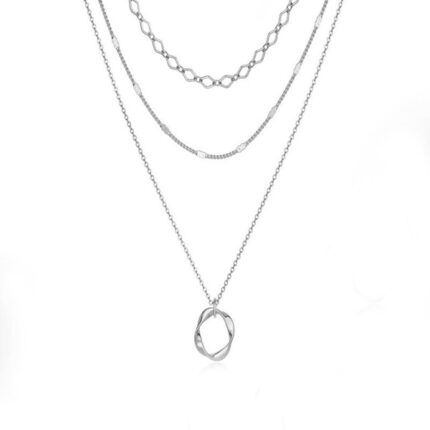 Simple twisted circle pendant fashionable women’s three-layer necklace