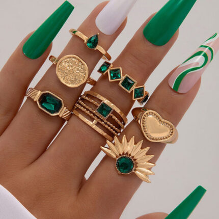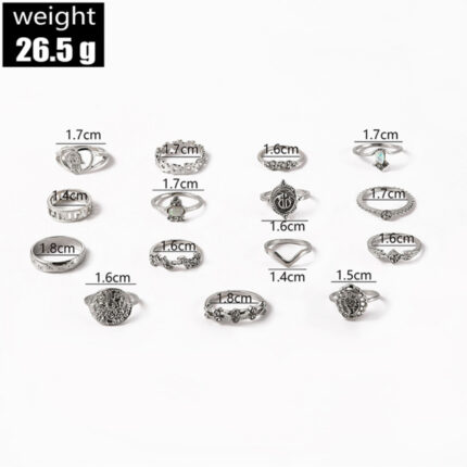 Retro personalized fashion metal diamond love palm ring multi-piece set