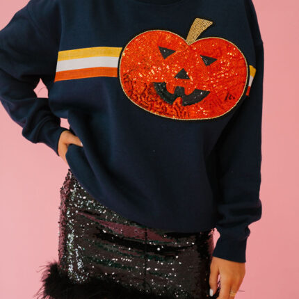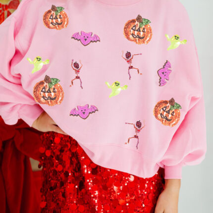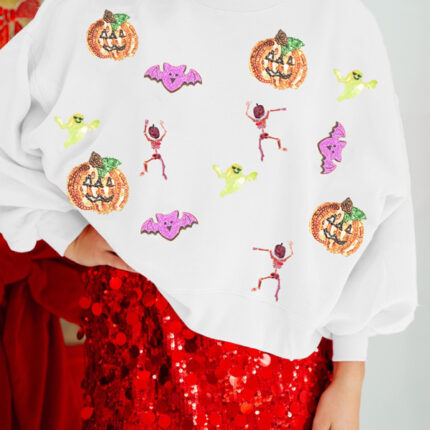 Women’s Halloween Multicolor Sequins Loose Long Sleeve Sweatshirt Round Neck Top