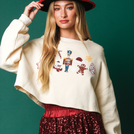 Christmas Sequin Decoration Top Casual Long Sleeve Short Sweatshirt