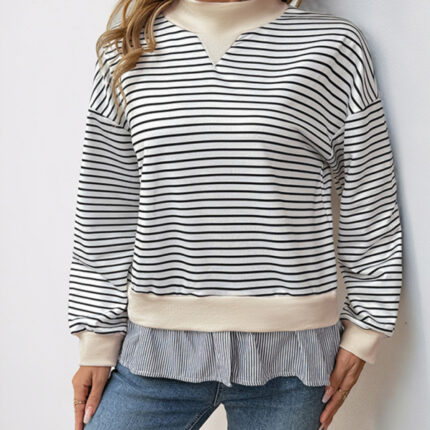 Casual Patchwork Color Block Front Button Long Lapel Sweatshirt