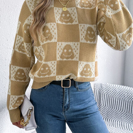 Halloween Plaid Lantern Long Sleeve Pullover Sweater