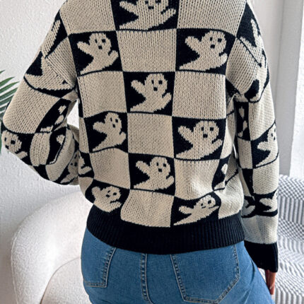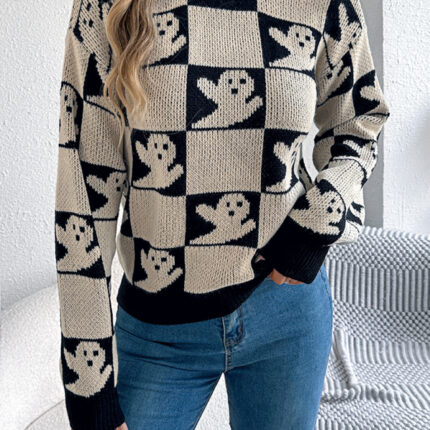 Halloween Plaid Long Sleeve Pullover Sweater