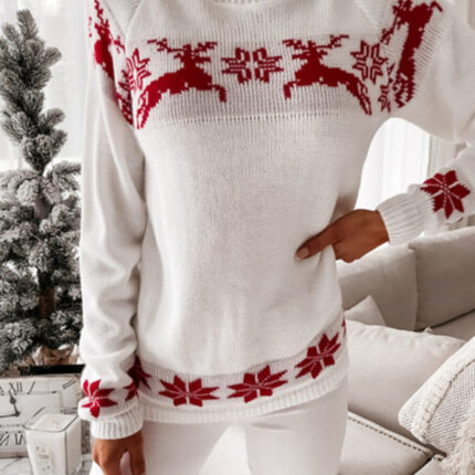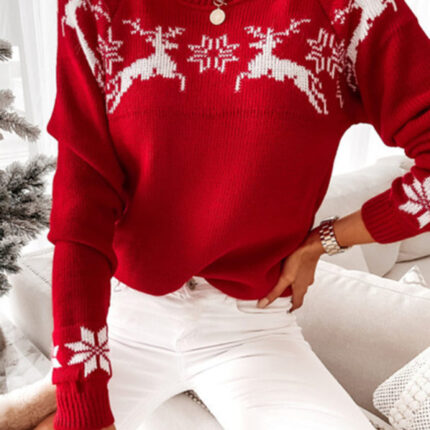 Christmas casual elk partial jacquard women’s knitted long-sleeved top