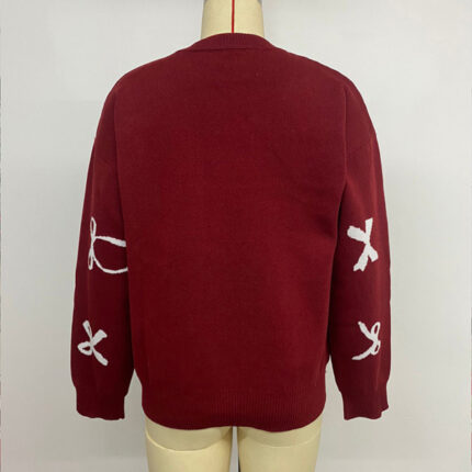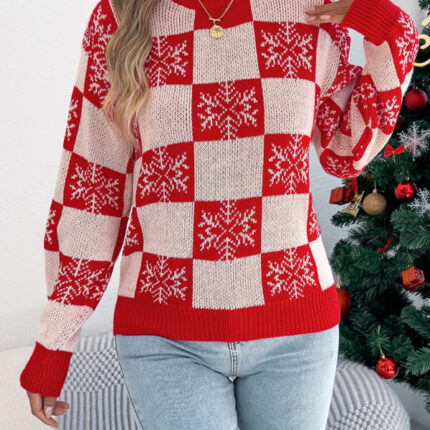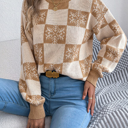 Christmas Snowflake Plaid Lantern Long Sleeve Pullover Sweater