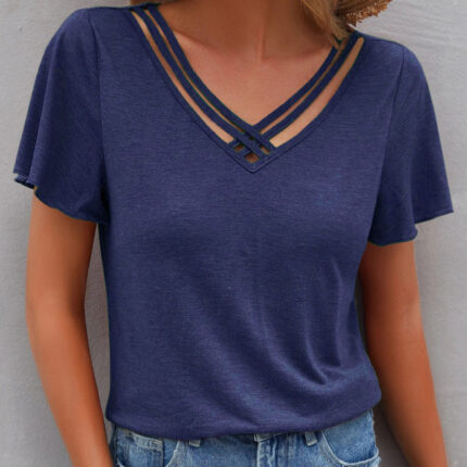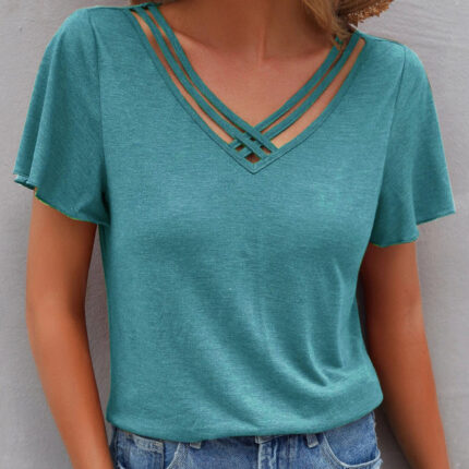 Women’s Solid Color Ruffle Sleeve Short Sleeve Top T-Shirt