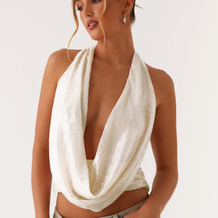 Women’s Sequined Halter Neck Backless Lace-Up Top Sexy Camisole