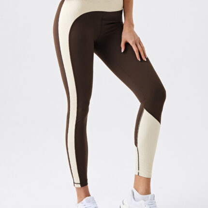 Eco-friendly recycled fabric contrast color yoga pants outdoor running and fitness leggings