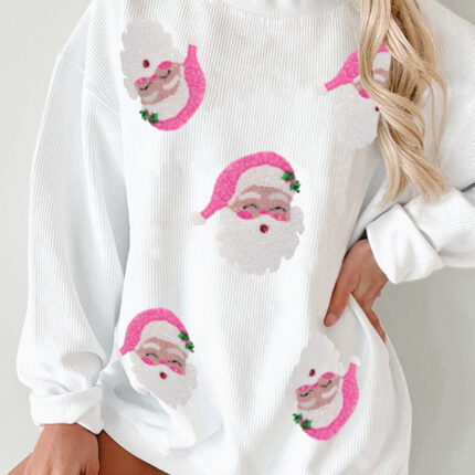 New Women’s Santa Claus Sequin Embroidery Loose Casual Long Sleeve Sweater