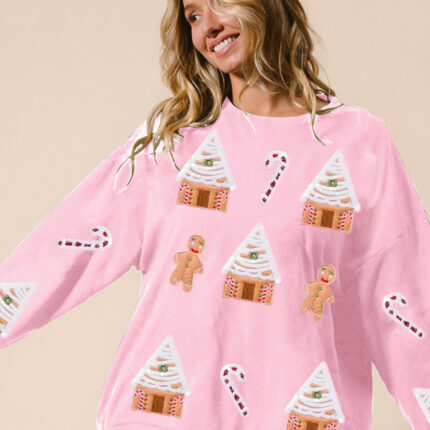 Women’s Christmas House Sequin Sweater Fashion Casual Top
