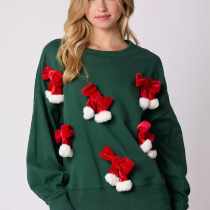 Christmas Bow Decorated Top Casual Long Sleeve Pullover Sweatshirt