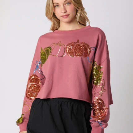 Halloween Pumpkin Sequin Top Long Sleeve Pullover Sweatshirt