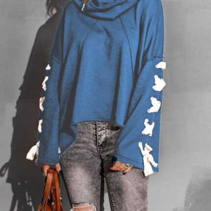 Women’s autumn and winter cotton niche design bandage · Oversized hooded pile neck sweater