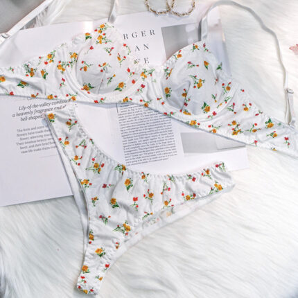 Sexy lingerie knitted sexy pastoral style small floral steel ring Two-piece set