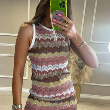 New geometric wave sexy slim sleeveless knitted sweater dress