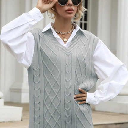 Women’s Long Solid Color V-Neck Vest Vest Knitted Sweater Dress