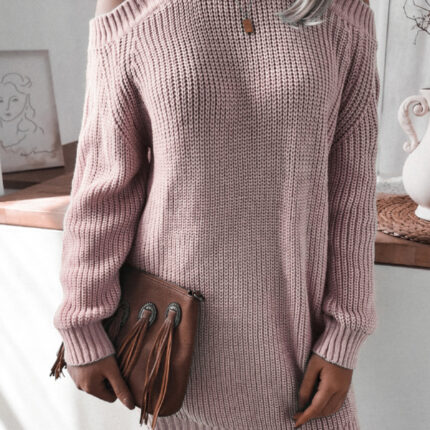 Women’s new style elegant solid color v-neck long-sleeved sweater dress