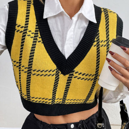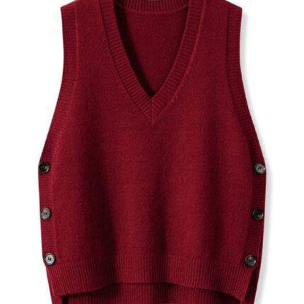 New Retro V-neck Knitted Vest Solid Color Casual Sweater Vest