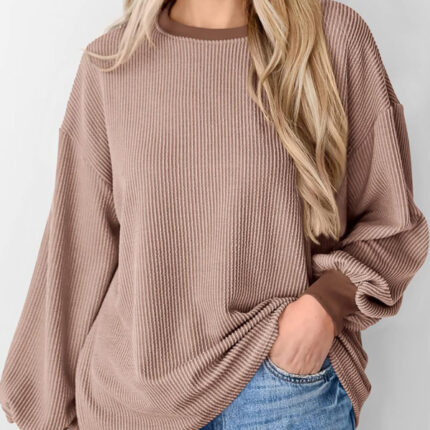 New textured small pit stripe loose long-sleeved T-shirt top fashionable casual sweatshirt