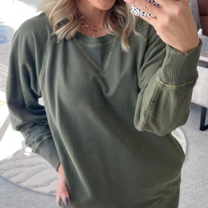 Women’s Bat Sleeve Ribbed Embellished Pocket Pullover Sweatshirt