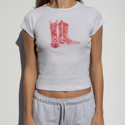 Fashionable hot girl style printed loose casual navel-baring short-sleeved T-shirt