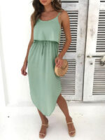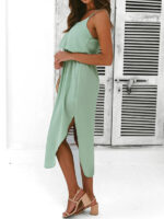Be the first to review “Casual solid color irregular slit suspender skirt high waist fake two piece dress” Cancel reply