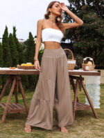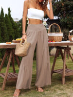 Casual wide-leg cotton and linen high-waist loose trousers for women