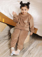 Introducing our cozy Children’s Embroidered Coral Fleece Pajama Set. Perfect for autumn and winter, this solid-pattern, polyester set features a round neckline, ensuring warmth and comfort for the little ones. Ideal for relaxing at home, these pajamas are trending among parents and on social media. Wholesale and dropshipping available.