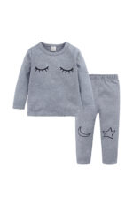 Crafted with soft, breathable cotton, this children’s homewear set features a charming eyelash and cloud print. Its knit design offers moderate elasticity for all-day comfort. Perfect for home lounging and sleepwear. Available for Wholesale and Dropshipping.