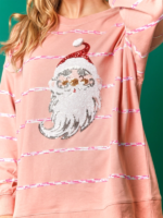 Christmas Santa Claus Sequin Casual Top Striped Long Sleeve Sweatshirt