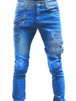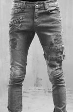 Jeans in a classic wash with a distressed effect on the front and back. Low-stretch denim creates a structured, fitted silhouette. A classic fit and front button closure complete the look. You can mix and match these jeans with regular tops, T-shirts, and long sleeves. Perfect for going out, relaxing or partying. Please use the size guide shown in our pictures and read each element of the size guide carefully before choosing a size.