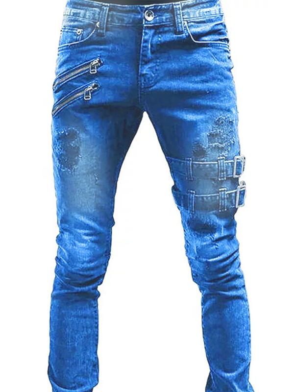 Jeans in a classic wash with a distressed effect on the front and back. Low-stretch denim creates a structured, fitted silhouette. A classic fit and front button closure complete the look. You can mix and match these jeans with regular tops, T-shirts, and long sleeves. Perfect for going out, relaxing or partying. Please use the size guide shown in our pictures and read each element of the size guide carefully before choosing a size.