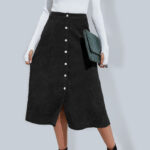 Corduroy Skirt Single Breasted High Waisted Skirt
