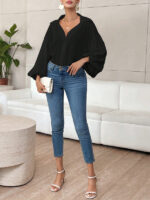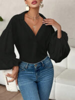 Be the first to review “Long-fitting, puff-sleeved top with a semi-open collar” Cancel reply